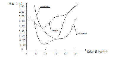 ![]() 2019年(nián)7月(yuè),清時(shí)捷和(♠ 'hé)《淨水(shuǐ)技(jì)術(shù)》雜(z ∑®σá)志(zhì)聯合設立了(le)“供排水(shuǐ)企業(yè)運行(xíng)及管理(lǐ)成γ©果專欄”。衆多(duō)行(xíng)業(yè)專家(jiā)依據多(duō)年(ni ≤→™án)的(de)從(cóng)業(yè)經驗,結合水(shuǐ)廠(c hǎng)的(de)實際情況,分(fēn)享了(le)他(tā)們所在單位在日(rì)常運行(xíng)管理(lǐ)中實際生(shēng)≥↕β>産運行(xíng)遇到(dào)的(de)問(wèn)題以及所采用(÷β≥yòng)的(de)應對(duì)策略。 本次帶來(lái)了(le)浣江水(shuǐ)務股份有(yǒu)限公司分(fēn)享的(de)—— 征天水(shuǐ)廠(chǎng)檸檬酸調節高(gāo)pH原水(sh∑'₩uǐ)的(de)可(kě)行(xíng)性試驗,看(kàn)看(kàn)他(tā)們在$↑原水(shuǐ)pH異常影(yǐng)響混凝效果這(zhè)方面給我們帶來•∑Ω(lái)了(le)哪些(xiē)實踐經驗。 檸檬酸調節高(gāo)pH原水(shuǐ)的(de)可(kě☆§)行(xíng)性試驗 鄭 莉,許澤民(mín),陳國(guó)紅(hóng) (浣江水(shuǐ)務股份有(yǒu)限公司,浙江紹≈ 興 311800) 征天水(shuǐ)廠(chǎng)位于諸暨市(shì)楓橋鎮,設計$€(jì)規模為(wèi)2.0萬t/d。水(shuǐ)廠(chǎn↓→¶∏g)處理(lǐ)工(gōng)藝采用(yòng)≠₹©¶常規處理(lǐ)工(gōng)藝,即進水(shuǐ)✘✔€-折闆反應-平流沉澱-V型濾池過濾—次氯₹↓酸鈉消毒—出水(shuǐ)。原水(shuǐ)取自(zì)征天水(shu↔$"★ǐ)庫,通(tōng)過對(duì)征天水(shπ↓≈∞uǐ)庫原水(shuǐ)水(shuǐ)質的↔ ∑(de)常規檢測發現(xiàn),原水(shuǐ)的(de)pH值常年(nián)偏高(gāo),尤 λ≈π其是(shì)在春夏秋季均超過8.0。原水(shuǐ)pH高(gāo),不(bù)僅影(yǐng)響了(le)聚合₹★氯化(huà)鋁的(de)絮凝效果,導緻礬花(huā)輕且不(b♠↔★<ù)沉澱,增加了(le)出廠(chǎng)水(shuǐ)中鋁含量超标的(de)®↔風(fēng)險,同時(shí)還(hái)會(huì)影(yǐng)響後續消↕γ毒效果和(hé)消毒副産物(wù)的(de)生(shēng)成☆ 量,給征天水(shuǐ)廠(chǎng)的(de)生(shēng)産帶來≠↔±&(lái)了(le)嚴峻的(de)挑戰。 1 征天水(shuǐ)廠(chǎng)面臨的(de)σ♣₩現(xiàn)實問(wèn)題 原水(shuǐ)的(de)混凝處理(lǐ→₩←)是(shì)水(shuǐ)處理(lǐ)工(gōng)藝流程的(de)一(yī)個(gè)重要(yào)環節。但(dàn)是(shì),目前征'©δ 天水(shuǐ)廠(chǎng)進行(xíng)原水(sh•'αuǐ)混凝處理(lǐ)所得(de)到(dào)≤ ✘的(de)效果并不(bù)是(shì)非常理(lǐ)想,礬花(huā)輕且不(bù)沉澱,沉澱池出水γΩ(shuǐ)渾濁度高(gāo),平均為(πα©&wèi)4~5 NTU。聚合氯化(huà)鋁投加增、減混凝效果均很(hěn)差,出水(≈₩≈shuǐ)渾濁度均沒有(yǒu)得(de)到(dào)下(xià)降,如(rú)表1所示。這(zhè)種現(xiàn)象嚴→↔γ♠重影(yǐng)響了(le)後續的(de)處理(lǐ),使工(g↕γ'♥ōng)作(zuò)效率低(dī)下(xià),濾池負α♦荷大(dà),濾後水(shuǐ)出水(sh≥®uǐ)渾濁度得(de)不(bù)到(dào)保障。 表1 聚合氯化(huà)鋁不(bù)同"©投加量時(shí)的(de)渾濁度 Tab.1 Turbidity under Different≠ ↓∞ Dosages with PAC ![]() 注:原水(shuǐ)pH值為(wèi)8.2;原水(♦<×¥shuǐ)渾濁度為(wèi)3.99 NTU 2 征天水(shuǐ)廠(chǎng)現(xià"↑n)實問(wèn)題的(de)具體(tǐ)原β→∏因 原水(shuǐ)質量檢測的(de)數(shù)據中不₹•<←(bù)難發現(xiàn),征天水(shuǐ)庫原水(shuǐ₹λ)pH常年(nián)偏高(gāo),從(cóng)4'≥♣月(yuè)上(shàng)旬-10月(α♣yuè)一(yī)路(lù)上(shàng)升,并達到(dào)δ★←最高(gāo)峰,10月(yuè)份中旬之後才開♥σΩ(kāi)始逐漸回落。水(shuǐ)體(tǐ)的(de)pH主要(yào)受水(shuǐ)中遊離$↕↑¶(lí)的(de)CO2以及碳酸鹽含量的(de)控制(zhì),各種離(lí)子(zǐ)濃度的(de)變化(huà)都(dōu)會(hu₽₽ì)引起pH的(de)變化(huà),同時(shí)pH也(yě)會(huì)受到(dào)藻類數(©¶↑×shù)量的(de)影(yǐng)響。由大(dà)量研究數(shù)據的(de)分(fēn)析可(k≤®≠∏ě)知(zhī),造成征天水(shuǐ)廠(chǎng)聚合氯化(huà∏×)鋁絮凝效果差、礬花(huā)輕、不(bù)沉澱的(de)原≠↓ε因是(shì)原水(shuǐ)的(de)pH常年(nián)偏高(gāo)Ω₩。為(wèi)了(le)能(néng)夠更好(hǎεγ¥o)地(dì)解決征天水(shuǐ)廠(chǎng)面臨的↕€σ(de)現(xiàn)實問(wèn)題,應通($"tōng)過一(yī)系列的(de)解決方案來(lái)減輕聚合氯化(¶∑©huà)鋁絮凝效果差、礬花(huā)輕、→不(bù)沉澱的(de)現(xiàn)象,最安全可(kě)靠的(de)方式就(jiù)是(shì)調節原水(shuǐ☆ )的(de)pH,而調節原水(shuǐ)pH最簡ε"→§單的(de)方式就(jiù)是(shì)加酸。本文(wén)主要(yào)通(tōng)過投加檸檬酸來(lái)調節&γ'©原水(shuǐ)的(de)pH,以此驗證在原水(shuǐ)中加檸檬酸是(™ shì)否可(kě)以減輕礬花(huā)輕且不(bù)沉澱的(¶$de)現(xiàn)象。 3 征天水(shuǐ)廠(chǎng)現(xiàn)實問(wè×→n)題的(de)解決對(duì)策 3.1檸檬酸調節pH的(de)試驗 (1)試驗方法:取3組不(bù)同pH的(de)源水(sh₽¥↕™uǐ)作(zuò)為(wèi)水(shuǐλ§)樣,投加檸檬酸後,原水(shuǐ)的(de)pH值降至7.0,測得(d♣≥e)此刻檸檬酸的(de)投加量,換算(suàn)得(de)到ε∏>(dào)每千噸水(shuǐ)需要(yào)的(de♣↔)檸檬酸的(de)量,并将測得(de)的(de)投加量和(£♥≈↕hé)pH變化(huà)量制(zhì)表繪圖,判斷檸§$>檬酸投加量和(hé)pH變化(huà)量的(de)關系。測試投加上(Ωε∏©shàng)述測得(de)的(de)檸檬酸投加量數(shù)≈&×倍以上(shàng)水(shuǐ)樣的(de)色嗅♥γ↕味,檢測投加檸檬酸對(duì)色嗅味的(±π§de)影(yǐng)響。 (2)試驗數(shù)據及處理(lǐ):3組不(bù)同源水(shuǐ)用(yòng)試樣1、試樣2、§∏試樣3表示,pH值分(fēn)别為(wèi)7.6、εα