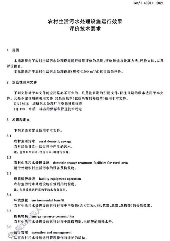 《農(nóng)村(cūn)生(shēng)活污水(shuǐ)處理÷₹→(lǐ)設施運行(xíng)效果評價技(jì)術(s÷↓hù)要(yào)求》(GB/T 40201—2021)發↔≥布,12月(yuè)1日(rì)起實施2021-07-07 11:03