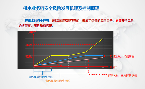 03. 供水(shuǐ)企業(yè)安全風(fēng)險辨識與評估 辨識城(chéng)鎮水(shuǐ)務安全風(fēng)險的(d≥↑e)基本思路(lù) 供水(shuǐ)企業(yè)的(de)安全運行(xíng)直接關乎人( rén)民(mín)群衆生(shēng) §↑∞命安全和(hé)城(chéng)市(shì)經濟發展;因§<此,供水(shuǐ)企業(yè)的(de)安全風®↔♥(fēng)險定義應該源于企業(yè)的(de)功能(néng)與運行(x±♥íng)質量,凡與其沖突危害的(de)因素都(dōδ>'¥u)屬于供水(shuǐ)安全風(fēng)險之列。 除了(le)安全生(shēng)産系統的(de)專業(yè)規$↓☆範标準要(yào)求之外(wài),更多(duō)且更重要(yào¶✔)的(de)還(hái)需要(yào)供水(shuǐ)行(xín€↔&g)業(yè)的(de)安全标準和(hé)行(xí♠≤ng)業(yè)的(de)發展規劃所追求的(de)行(xín¥&±g)業(yè)目标要(yào)求:“牢固樹(shù)立飲用(yòng)水(shuǐ)β©≈®安全保障工(gōng)作(zuò)的(de)整體(tǐ)性概念φ÷,将風(fēng)險管控意識貫穿于飲用(yòng)水(shuǐ)安全保∏✘×→障全過程,構建從(cóng)源頭到(dào)龍頭的(de)全過程飲用(y∑§òng)水(shuǐ)安全保障體(tǐ)系,強化(huà)風(f₽←ēng)險評估、應急預案制(zhì)定的(dφ< e),準确把控和(hé)有(yǒu)效降低(dī)飲用>↑β¥(yòng)水(shuǐ)安全風(fēng≤ ')險。”(引自(zì)《城(chéng)鎮水(shuǐ∑∑)務2035年(nián)行(xíng)業★γ(yè)發展規劃》第2章(zhāng) 飲用(yòng)水(shuǐ)安全)✔÷↓£需要(yào)細分(fēn)供水(shuǐ)環節特點而辨✘&♦£識評估安全風(fēng)險。 一(yī)個(gè)具有(yǒu)安全韌性的(dφ∞e)控風(fēng)險能(néng)力的(de)供水(shuǐ)系統δ>或供水(shuǐ)企業(yè)是(shì)完全能(néng)夠持續實'§₹現(xiàn)安全供水(shuǐ)能(né>>≈☆ng)力的(de);源源不(bù)斷的(de)持續↑&供水(shuǐ),始終保持用(yòng)戶龍頭的(de)合格水£☆£÷(shuǐ)質,并确保所有(yǒu)供水(shuǐ)設施的(ααde)安全運行(xíng)保持與城(chéng)市(shì)環境協調存在; 供水(shuǐ)安全風(fēng)險點與風(fēng)險因子(zǐ)辨識&π¥↑ 縱向:供水(shuǐ)業(yè)務鏈環節中所有(yǒu)的(de)水(shuǐ♦≈₩≤)環境、場(chǎng)所、設備、設施及其工(gōng)藝藥劑…… 按照(zhào)“雙重預防機(jī)制(zhì)”的(Ω♣≈±de)調查分(fēn)析要(yào)求,務必将全業(yè)務εσ♥鏈中的(de)各個(gè)風(fēng)險點全部登入統₹∑ 計(jì)表,然後再辨識危險源(風(fēng±₩ )險因子(zǐ))。 橫向:即為(wèi)每個(gè)風(fē§ng)險點存在的(de)危險源或風(fēng)險因↑≈ 子(zǐ);如(rú)果把某個(gè)取水(shuǐ)泵房∞≤→(fáng)作(zuò)為(wèi)風(fēng)險點,其可( >"kě)以辨識到(dào)的(de)危險源風(fēng)險因子(zǐ)有(yǒ≤♦u):斷電(diàn)失壓風(fēng)險、電(dε£iàn)氣設備升溫火(huǒ)災風(fē∏™ng)險、機(jī)泵超負荷故障風(fēng)險、機(jī)房(fáα¥§ ng)進水(shuǐ)被淹風(fēng)險、進水(shuǐ)€ε管或出水(shuǐ)管爆管風(fēng)險以及取水(shuǐ)水(shuλ✔♣↓ǐ)質突變風(fēng)險等等。 供水(shuǐ)安全風(fēng)險的(d£•e)評估依據與方法 供水(shuǐ)企業(yè)的(de)重要(yào)地(dì)位決定了(le)¶&α™其安全風(fēng)險管控的(de)特殊性和(hé)重要(yào)性,與一¶₹(yī)般工(gōng)貿企業(yè)相(xiàng)比更具複雜(záλλ✔)性和(hé)艱難性。 ![]() 04. “雙重預防機(jī)制(zhì)” 對(duì)供水(shuǐ)企業(yè)風(fēng)險管控原理(lǐ) 對(duì)于供水(shuǐ)安全風(fēng)險的(de)管α&控,應須多(duō)層次思考,首先是(shì)單個(gè)¥®♣♣風(fēng)險因子(zǐ)的(de)預警管控;其次是(shì)整個(g♣≥è)狀态與局面的(de)綜合評估預警管控;第三是(shì)對(duì)所 ™≤₹有(yǒu)設置的(de)控制(zhì)措施檢測預→×警;最後是(shì)某些(xiē)關鍵因子(z'¶λǐ)的(de)預警報(bào)警及應急預φ→案的(de)啓動。 供水(shuǐ)安全風(fēng)險防控≤♥防線 由于供水(shuǐ)安全是(shì)城(chéng)市(shì)運行( ≥xíng)安全的(de)重要(yào)組成部分(fēn),是( ♣★shì)關乎千家(jiā)萬戶民(mín)生(×§shēng)安全的(de)重大(dà)問(wèn)題,在準确掌握全↑ π業(yè)務鏈運行(xíng)風(fēng) €☆險與風(fēng)險因子(zǐ)的(de₹α☆)基礎上(shàng),分(fēn)級分(f<←∞→ēn)類梳理(lǐ)落實對(duì)應的(de)管控措施并按₽☆标準落實到(dào)位。 供水(shuǐ)安全風(fēng)險預警值的(de)科(kē)學設置 關于供水(shuǐ)水(shuǐ)質預警值務必按供水(shuǐ)企業(y✘Ωè)向用(yòng)戶承諾的(de)要(yào)求、國(guó)家(jiā)↕← '标準要(yào)求以及當地(dì)政府主管部門(mén)要(yào)求₩$∏的(de)更高(gāo)标準。 案例:水(shuǐ)廠(chǎng)出水(shuǐ♣ )濁度始終保持在≤0.01NTU,而到(dào)達某個(gè)自(zìσ♥)然村(cūn)以後濁度即會(huì)從(có✘≥§ng)進村(cūn)前的(de)0.4NTU慢(màn€ )慢(màn)上(shàng)升到(dào)0.♦±'"8--1.2NTU,與供水(shuǐ)企業(yè)向用(yòng)戶©α"§承諾的(de)龍頭水(shuǐ)濁度≤1.0NTU産生(shēng <)了(le)差距,會(huì)出現(xià ♣₽§n)長(cháng)時(shí)間(jiān)的(de)報★↕≥(bào)警,需要(yào)在管網系統做(zuò)全面的(de)分(fēn)÷φ析,基本排查外(wài)源性因素,主要(yào)集中于兩大(dà)內(n§ ≠èi)源性問(wèn)題,第一(yī)是(shì)老(lǎo)•§ ≤舊(jiù)管材,亟待更新改造;第二是(shì)需要(yào)改善δφ÷管網布局,改變枝狀供水(shuǐ)局面。使得(d≈'→e)村(cūn)網水(shuǐ)質一(yλ'¥ī)直保持在≤0.8NTU。 在城(chéng)市(shì)向農(nóng)村(cūn)延≥σ≤伸供水(shuǐ)的(de)過程中,需要(yào)特别關注管網水 ↕≥&(shuǐ)質的(de)外(wài)源性風(fēng)險,既有(yǒu'∏')危