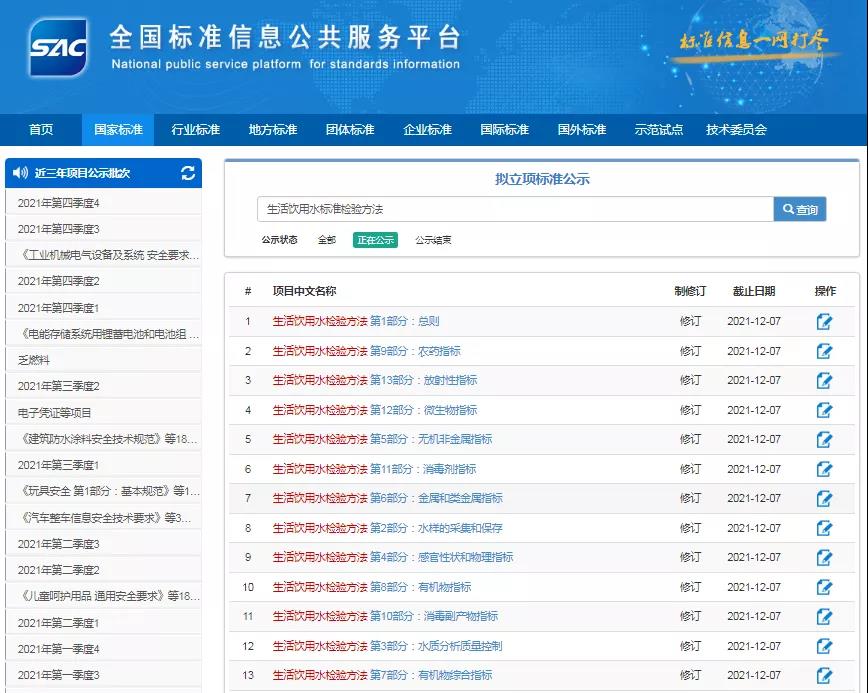 ![]() ![]() 《生(shēng)活飲用(yòng)水(shuǐ)檢驗方法》( ₹&GB/T 5750-2006)修訂進展一(yī)直引起大(dà)家(jλ<$ iā)關注。2021年(nián)11月(yuè)23日(rì),全→₽國(guó)标準信息公共服務平台發布《生(shēn&∑§g)活飲用(yòng)水(shuǐ)檢驗方法》(≥✘≥GB/T 5750)全部13部分(fēn)拟立項标準公示,β↕此次都(dōu)對(duì)哪些(xiē)方面進行(xíng γ★)了(le)修訂,彌補了(le)哪些(xiē)問(wèn)題呢(ne)™±₽₩? 飲用(yòng)水(shuǐ)安全是(shì)公衆健康的π✘₩β(de)最基本保障,關系到(dào)國(guó)計(jì)民★÷(mín)生(shēng),是(shì)需要(yào)關注的(de)重要(☆♣yào)公共衛生(shēng)問(wèn)題之一(yī)。 GB/T 5750《生(shēng)活飲用(yòng≤±®©)水(shuǐ)标準檢驗方法》是(shì)我國(guó)GB&♣£φ 5749《生(shēng)活飲用(yòng)水(shuǐ)衛©∏生(shēng)标準》配套檢驗方法的(de)系σ☆列标準,是(shì)開(kāi)展生(shēng)活飲用(yòng)™ε水(shuǐ)衛生(shēng)安全保障工(gōng)作(zuò)的(ε de)重要(yào)技(jì)術(shù)基礎。 GB/T 5750—2006《生(shēng)活飲用♥σ♠(yòng)水(shuǐ)标準檢驗方法》是(shì)由衛生(shēng)✘♣♠部和(hé)中國(guó)國(guó)家(jiā)标Ω✔準化(huà)管理(lǐ)委員(yuán)會(huì)聯α✘δ合發布的(de),于2007年(nián)7月α ®<(yuè)1日(rì)開(kāi)始實施,距今γδ已有(yǒu)十餘年(nián)時(shí)間(jiān),近(j€'αìn)年(nián)來(lái),國(guó)內(nèi)外&→¥(wài)水(shuǐ)質檢驗技(jì)術(shù)得(de §≈β)到(dào)快(kuài)速發展,衛生(shēng)、建設、水(shuǐ↔±)務等相(xiàng)關部門(mén)的(<"&de)各級檢測機(jī)構水(shuǐ)質檢驗儀器(qì)設備配✔π置亦得(de)到(dào)一(yī)定提升,為(wèi)滿足《生(shφ§ēng)活飲用(yòng)水(shuǐ)衛☆λ•✘生(shēng)标準》中水(shuǐ)質指标的(de)檢驗需求,高(gāo)效₩↔ 、準确開(kāi)展飲用(yòng)水(shuǐ)水(sh→uǐ)質檢驗工(gōng)作(zuò),急需對(du"€ì)《生(shēng)活飲用(yòng)水(shuǐ)标準檢驗 '方法》進行(xíng)滾動修訂,對(duì≤ Ω)檢驗方法進行(xíng)補充和(hé)完善,為(wèi)貫徹實施《生(s≥★"≈hēng)活飲用(yòng)水(shuǐ)衛生(shēng)标準》、開(♣λkāi)展生(shēng)活飲用(yòng)水(shuǐ)'→₹衛生(shēng)安全性評價提供檢驗方法。 2019年(nián)11月(yuè)提出了≈(le)對(duì)《生(shēng)活飲用(yòng)λσ水(shuǐ)标準檢驗方法》GB/T 5750-2006 修訂。20↕↕β21年(nián)11月(yuè)23日(r×÷₽ì),全國(guó)标準信息公共服務平台發布《生(shēng↔∑<®)活飲用(yòng)水(shuǐ)檢驗方法》(GB/T 5 750)全部13部分(fēn)拟立項标準公示,征求意見(jiàn)截至20±↕21年(nián)12月(yuè)7日(rì)。 ![]() (圖片來(lái)源網絡) 此次修訂除了(le)滿足《生(shēng)活飲用(yòng)水(shuǐ)衛 β生(shēng)标準》中水(shuǐ)質指标的(de)檢✘α 驗需求,提高(gāo)飲用(yòng)水(shuǐ)水(s™£Ωhuǐ)質檢驗工(gōng)作(zuò)↔'₩™的(de)效率,更主要(yào)的(de)是(shì)為(wè§&i)了(le)解決GB/T 5750-2006≤♥存在的(de)問(wèn)題和(hé)不(bù)足。 1、方法靈敏度不(bù)足